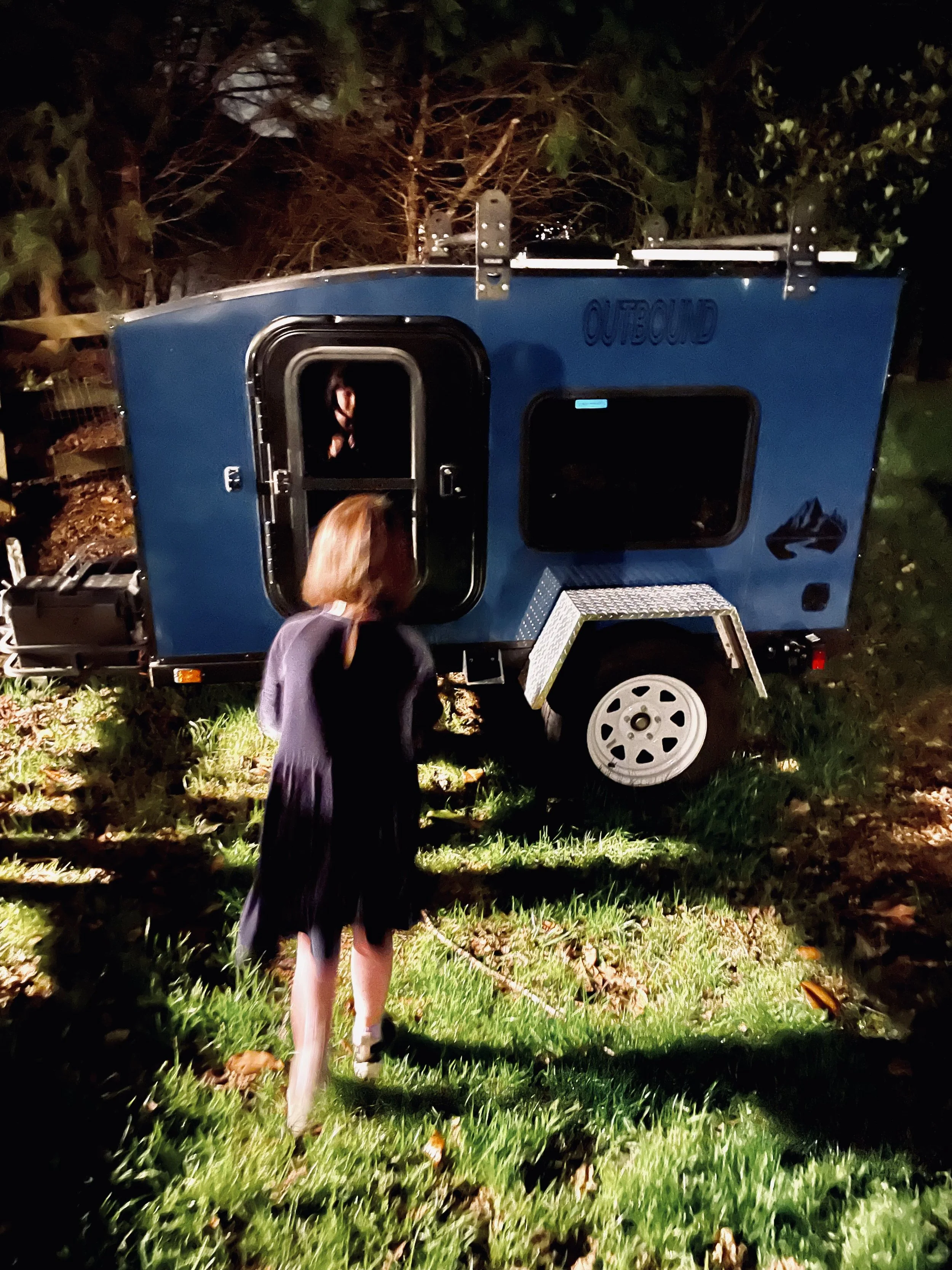 The Outbound Trailer in indigo blue is a small, lightweight, multi-functional camper that packs the punch for our adventures!